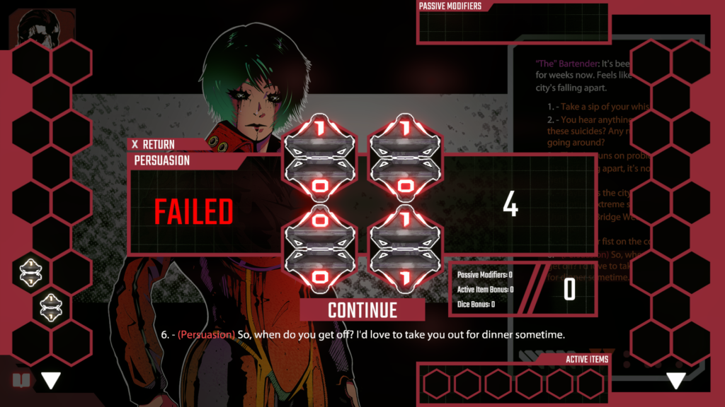 Evet, sadece karşınızdakinin istediği duygu üzerinden ilerlemeniz yeterli değil. Bunu sağlayabilecek şansınız var mı öğrenmeniz de gerekli. Zar atmak oyunun en basit, ama en önemli mekaniklerinden biri. Hikayenizi şekillendiren asıl anahtar. Mükemmel giden bir araştırmada öğrenmeniz gereken son ipucu şans faktörünün ardında. Başarırsan, gizemler tereyağından kıl çeker gibi çözülür. Fakat başarısız atacağın her seçenek ölümden beter senaryolarla bile sonuçlanabilir. Baskı yok, ama şans kesinlikle her zaman sizin yanınızda olmayacak.