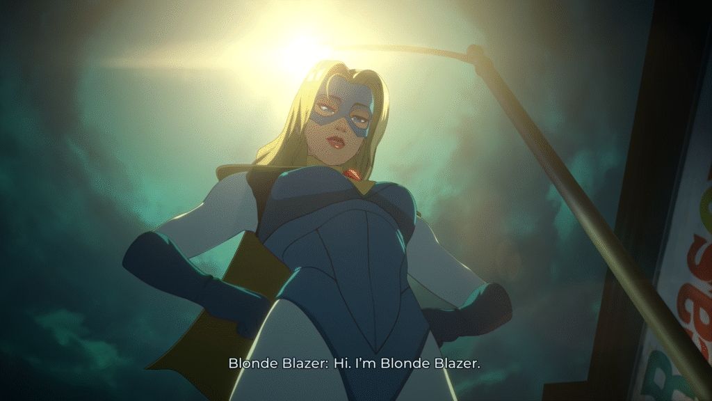 Trajik bir şekilde kahramanlığa ara verdiğinin haberini yayınlamasıyla da bir grup haydutun arasında dayak yiyecek konuma gelmesi de hiç şaşırılacak bir durum değildi tabii ki. Kurtulmasının zor bir durum olacağı haydutların arasına göklerden yıldız gibi parlayan, gerçek anlamda süper olan kahramanımız Blonde Blazer yetişir. Robert’ı efor sarf etmeden olduğu yerden çekip alarak, sadece kahraman olanların gireceği bir barda içki ısmarlamaya yol alır.