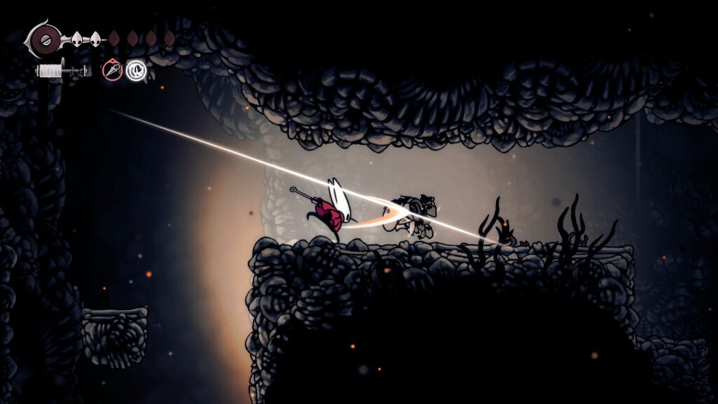 Grind yapmak teoride çok basit gibi dursa da bahsettiğimiz oyun Silksong. Ve bu oyunda hitbox durumu da çok büyük bir sorun. Hornet’in çapraz saldırıları bazı durumlarda hedefi tutturmakta gerçekten problem çektiren bir hal alıyor. Buna ek olarak bazı düşmanların saldırıları da anlam verilemeyecek uzaklıkta olsa bile hasar sayılıyor. Oynanış tarzınızı değiştirerek bunu önlemenin yolları mevcut. Ama karakterinizin yeteneklerini değiştirerek oynayış konforunuzu baştan aşağı yenilemek bir sorunu düzeltmek için doğru yöntem olmamalı.